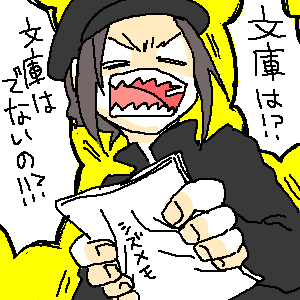 ・ついでに拷問用文庫もわからなかった。どくろちゃんとれでぃ×ばとしかわからん。あとなんだ。成田が言うには帯だけ見えてるやつも分かった人がいるらしいけど。すごいな
